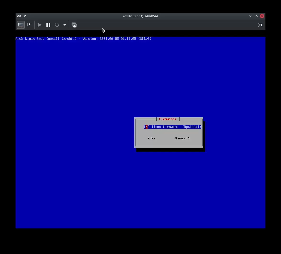 У овом делу је могуће изабрати додатни кернел за инсталацију, добар кандидат за ово је linux-lts. Пожељно је имати резервну варијанту ако се најновија верзија кернела не покаже као добар избор. Битна ставка је менаџер мреже (networkmanager), јер ћете желети да подешавате мрежне везе графичким путем. Остало је по важем избору и зависно од хардвера који поседујете.