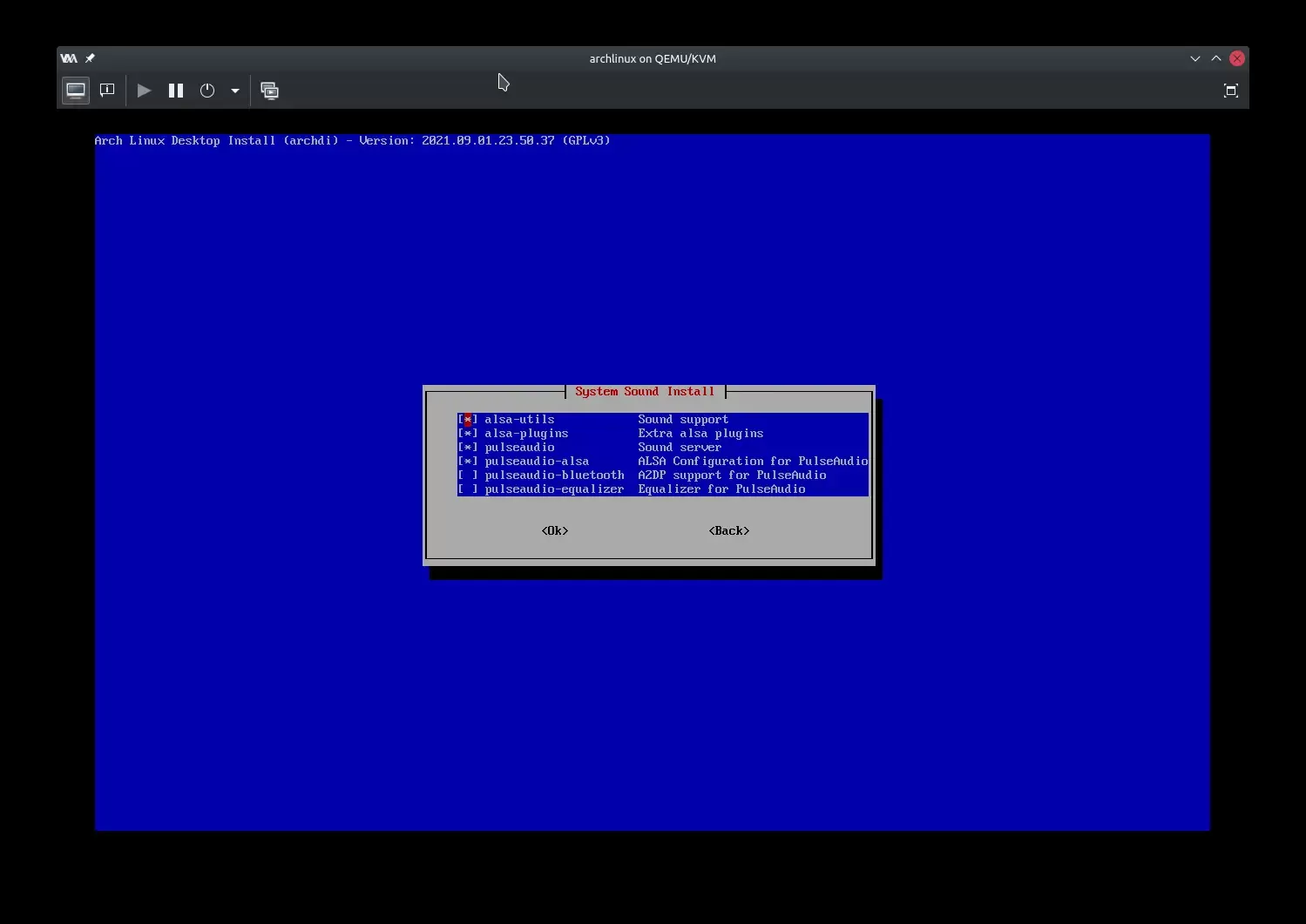 У овом делу је могуће изабрати додатни кернел за инсталацију, добар кандидат за ово је linux-lts. Пожељно је имати резервну варијанту ако се најновија верзија кернела не покаже као добар избор. Битна ставка је менаџер мреже (networkmanager), јер ћете желети да подешавате мрежне везе графичким путем. Остало је по важем избору и зависно од хардвера који поседујете.