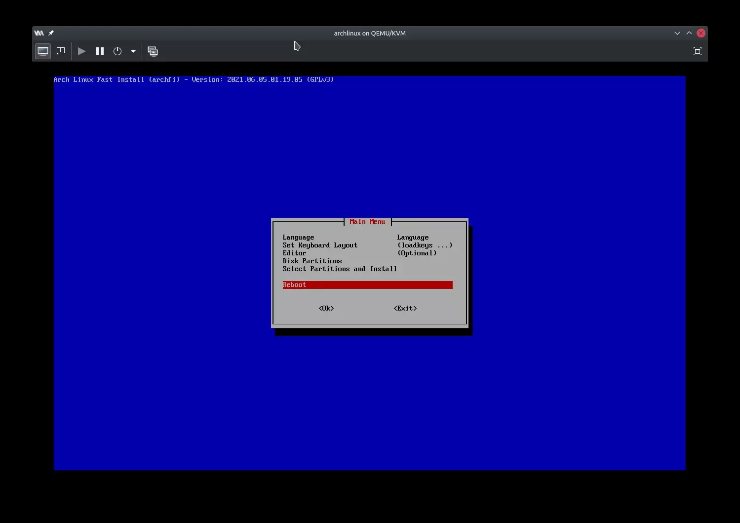 Као и код стандардне инсталације, започиње се одабиром језика, распореда тастатуре и партиционисањем уређаја и монтирањем партиција на који ће бити инсталиран нови систем. У овом примеру се ради о ГПТ систему са ЕФИ системском партицијом (што је случај са свим рачунарима купљеним у последих 10ак година).